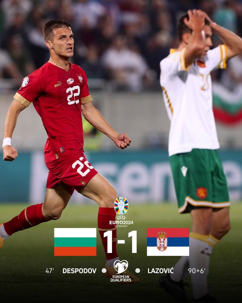 Γλύτωσε το κάζο στις καθυστερήσεις η Σερβία, καθώς χάρη σε πανέμορφο τέρμα του Λάζοβιτς στο 90+7’, αναδείχθηκε ισόπαλη 1-1 με τη Βουλγαρία για την 4η αγωνιστική του 7ου ομίλου.