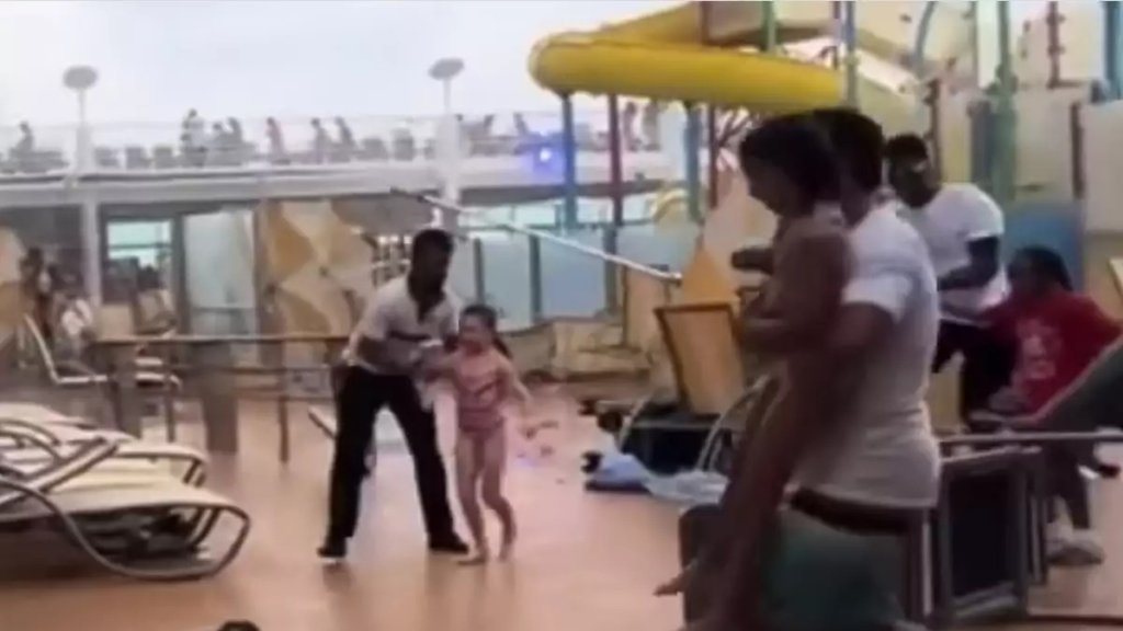 Σε βίντεο που τραβήχτηκαν την ώρα του απόλυτου αυτού χάους, βλέπουμε μια μητέρα να τρέχει με το μωρό της στην αγκαλιά της τη στιγμή που ένα βαρύ αντικείμενο πέφτει χιλιοστά μακριά τους και διαλύεται στο πάτωμα του καταστρώματος μαζί με το καρότσι του μωρού.