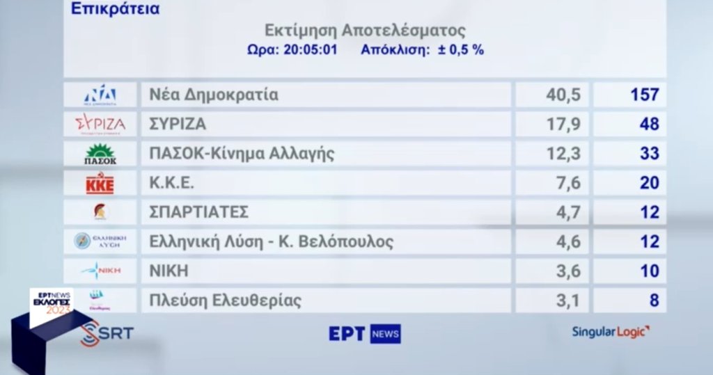 Ένας στους δύο (52,5%) άνω των 64 ετών ψήφισε ΝΔ στις εκλογές της Κυριακής και ακολούθησαν ΣΥΡΙΖΑ 17,9%, ΠΑΣΟΚ 14,6%, ΚΚΕ 6,6%, Ελληνική Λύση 2,8%, ΝΙΚΗ 1%, και Πλεύση Ελευθερίας, ΜεΡΑ25 και Σπαρτιάτες από 1,3%.