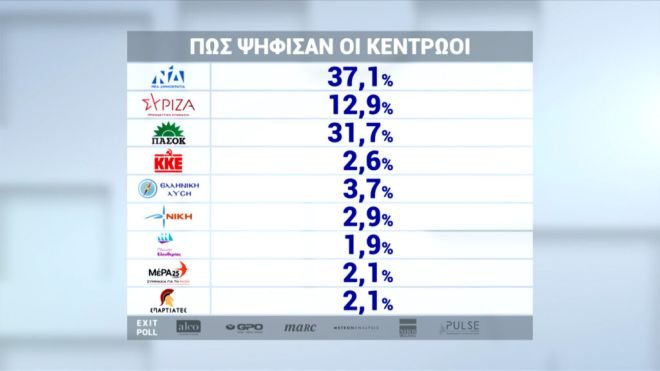 Παραπάνω από ένας στους τρεις ψηφοφόρους που αυτοπροσδιορίζονται ως κεντρώοι στήριξαν τον Κυριάκο Μητσοτάκη ενώ στη συγκεκριμένη κατηγορία που αναλύθηκε από το exit poll δεύτερο κόμμα αναδείχθηκε το ΠΑΣΟΚ με 31,7% με τον ΣΥΡΙΖΑ να καταγράφει μόλις 12,9%. Το εντυπωσιακό είναι ότι το ΠΑΣΟΚ είναι τρεις φορές πάνω από τον ΣΥΡΙΖΑ σε αυτούς που δηλώνουν κεντρώοι.