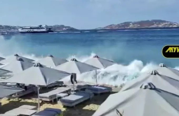 Πανικός προκλήθηκε στην παραλία του Αγίου Στεφάνου στην Μύκονο όταν το πλοίο της γραμμής Word Champion Jet πέρασε σε κοντινή απόσταση από την ακτή και με μεγάλη ταχύτητα με αποτέλεσμα από τα απόνερα να δημιουργηθούν τεράστια κύματα που σκέπασαν όλη την πλαζ και έφτασαν μέχρι τον δρόμο.