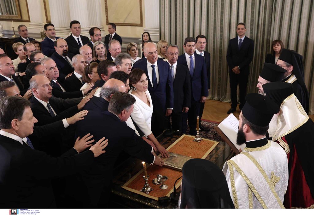 Αμέσως μετά ξεκίνησε η διαδικασία της υπογραφής του Πρωτοκόλλου Ορκωμοσίας των υπουργών, αναπληρωτών υπουργών και υφυπουργών με πρώτο που υπέγραψε τον πρωθυπουργό Κυριάκο Μητσοτάκη και ακολούθως τον Αρχιεπίσκοπο Ιερώνυμο.