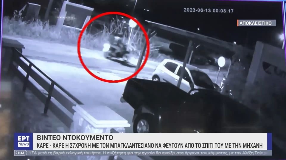 Στο κεντρικό δελτίο ειδήσεων της ΕΡΤ προβλήθηκε βίντεο, στο οποίο φαίνεται ο Μπαγκλαντεσίανός με την 27χρονη να επιβαίνουν στη μηχανή του, το βράδυ της Δευτέρας 12 Ιουνίου 2023.