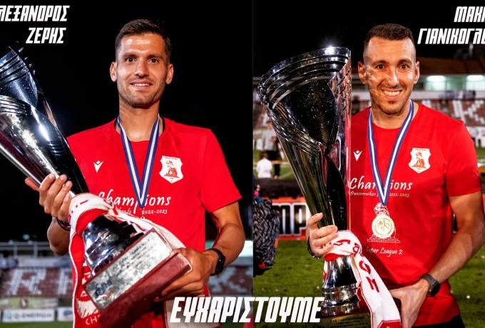 «Η ΠΑΕ Πανσερραϊκός ανακοινώνει πως η συνεργασία της με τους ποδοσφαιριστές Αλέξανδρο Ζέρη και Μάκη Γιαννίκογλου ολοκληρώνεται στις 30 Ιουνίου.