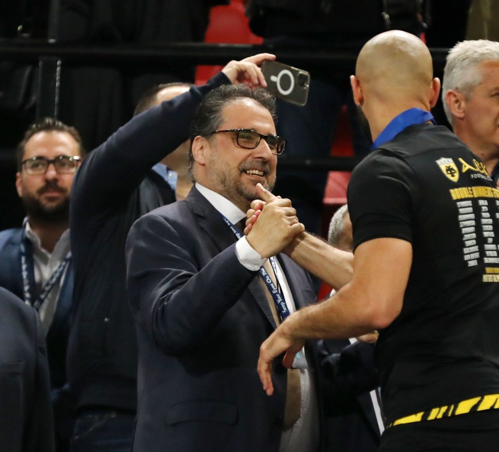 Συνεχίζοντας είπε: «Όλη αυτή η αλλαγή που έχει γίνει στην διάθεση του κόσμου σε σχέση με την ΑΕΚ διακρίνεται και σε έναν ολόκληρο δήμο. Πρόσφατα ήμουν σε μια εκδήλωση των πτυχιούχων φυσικής αγωγής, ενός φορέα που έχει χρόνια δράση και αποτελείται από κόσμο που ξέρει τον αθλητισμό. Είχαν ως ενότητα τον αθλητισμό και τη βιώσιμη ανάπτυξη. Βράβευσαν τον κύριο Μελισσανίδη για την κατασκευή της Αγιάς Σοφιάς. Εκπροσώπησα εγώ την ΑΕΚ και τον ίδιο και παρέλαβα την πλακέτα. Νομίζω πως αθλητισμός και βιώσιμη ανάπτυξη είναι το απτό παράδειγμα του τι συμβαίνει στη Νέα Φιλαδέλφεια. Είναι πραγματική ανάπτυξη.