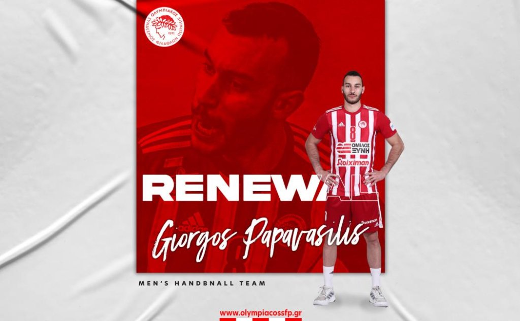 Παίκτης της ανδρικής ομάδας χάντμπολ του Ολυμπιακού θα συνεχίσει να είναι ο Γιώργος Παπαβασίλης, αφού υπέγραψε νέο συμβόλαιο, μετά από τη συμφωνία ανάμεσα στις δύο πλευρές. Η επίσημη ανακοίνωση αναφέρει τα παρακάτω: «Ο ΟΛΥΜΠΙΑΚΟΣ Σ.Φ.Π. ανακοινώνει την ανανέωση της συνεργασίας του με τον Γιώργο Παπαβασίλη. Ο διεθνής εξτρέμ υπέγραψε το νέο του συμβόλαιο και παραμένει στο ρόστερ της ομάδας χάντμπολ του συλλόγου».