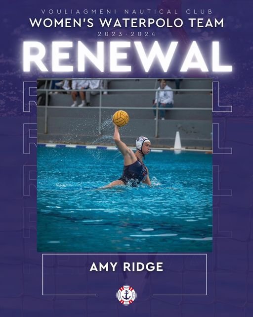 Παίκτρια της γυναικείας ομάδας πόλο της Βουλιαγμένης θα συνεχίσει να είναι η Έιμι Ριτζ, αφού η 27χρονη διεθνής με την εθνική Αυστραλίας, ανανέωσε το συμβόλαιό της, για έναν ακόμα χρόνο. Η επίσημη ανακοίνωση του ΝΟΒ έχει ως εξής: «Ο Ναυτικός Όμιλος Βουλιαγμένης και το τμήμα υδατοσφαίρισης γυναικών ανακοινώνουν με χαρά, την επέκταση της συνεργασίας τους με την Αυστραλή περιφερειακό, Έιμι Ριτζ.