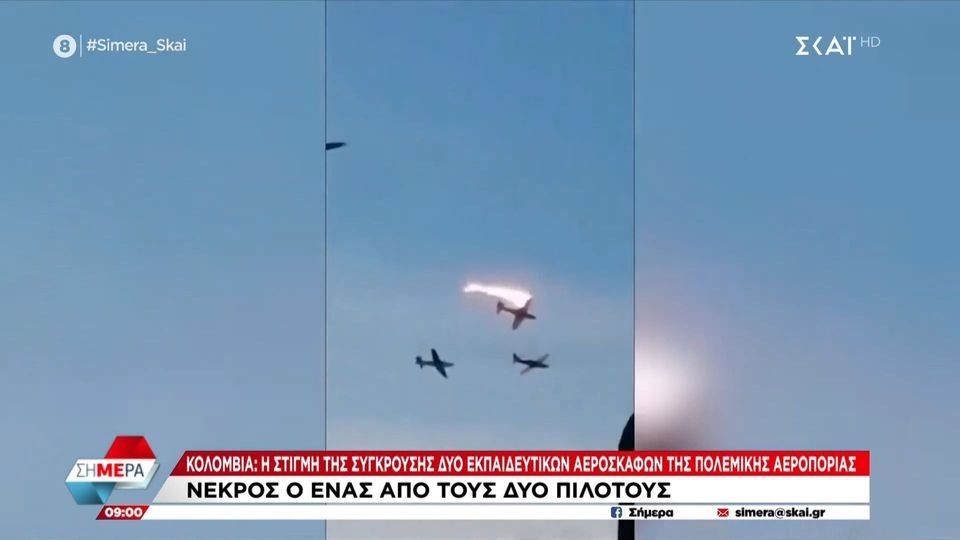 Κολομβία: Η στιγμή σύγκρουσης δύο εκπαιδευτικών αεροσκαφών της πολεμικής αεροπορίας (VIDEO)
