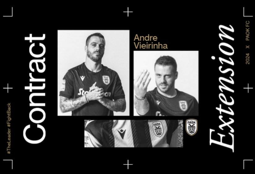 Αναλυτικά η ανακοίνωση της ΠΑΕ ΠΑΟΚ: "Η ΠΑΕ ΠΑΟΚ ανακοινώνει την ανανέωση για έναν ακόμη χρόνο του συμβολαίου του εμβληματικού μας αρχηγού Αντρέ Βιεϊρίνια.