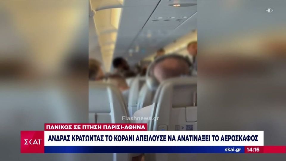 Πανικός σε πτήση Παρίσι-Αθήνα: Άνδρας κρατώντας το κοράνι απειλούσε να ανατινάξει το αεροσκάφος (VIDEO)