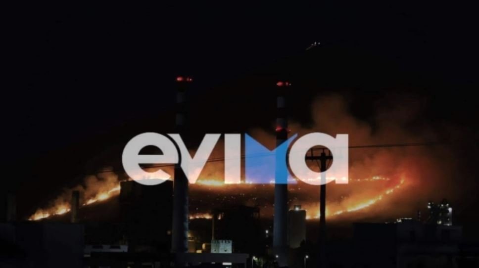 Ανεξέλεγκτη καίει η φωτιά στo Αλιβέρι Ευβοίας, ενώ το πύρινο μέτωπο βρίσκεται 4 χιλιόμετρα μακριά από το εργοστάσιο της ΑΓΕΤ.