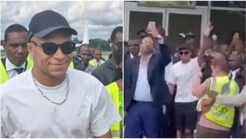 Mbappe's arrival in Cameroon cause pandemonium at the aiport the police,airport workers,travellers all left their duties to either take Selfie or walk new Mbappe.