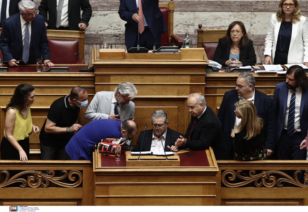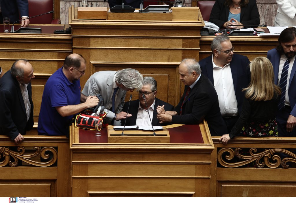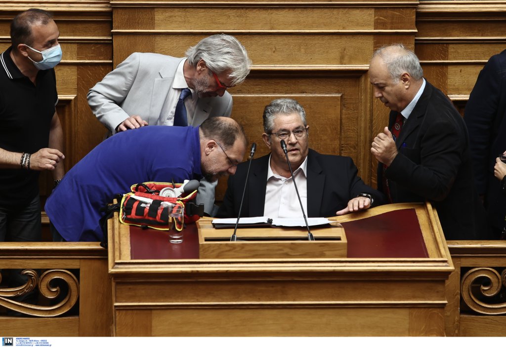 Όπως ανέφερε ο Δημήτρης Κουτσούμπας επρόκειτο για σπασμό, σύμφωνα με τη διάγνωση των γιατρών – βουλευτών που ήταν στην αίθουσα.