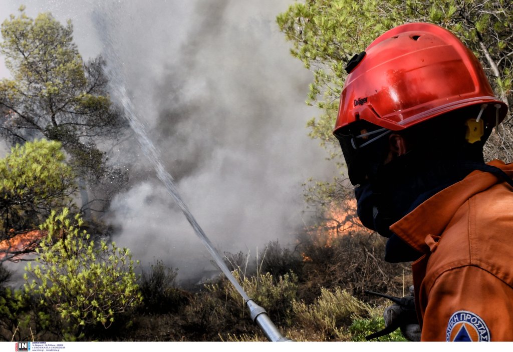 Στην περιοχή πνέουν ισχυροί άνεμοι ενώ επίγειες και εναέριες δυνάμεις της Πυροσβεστικής επιχειρούν προκειμένου να την περιορίσουν.