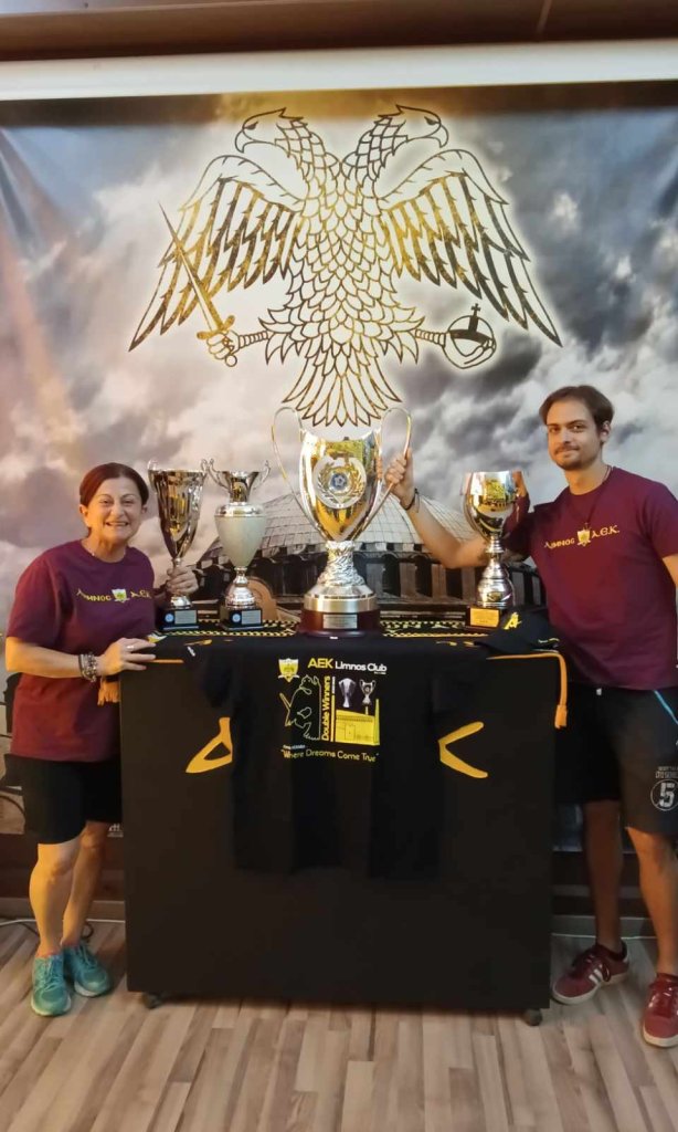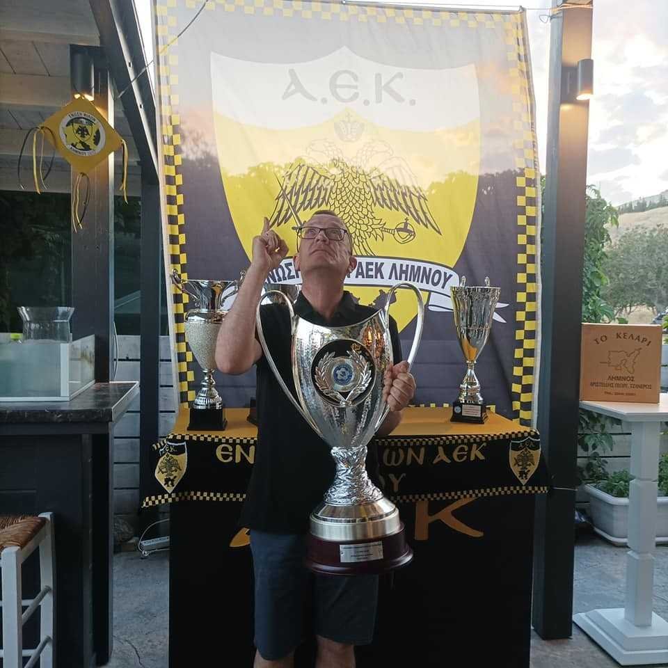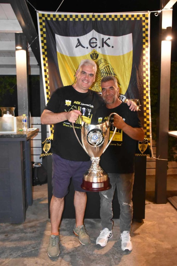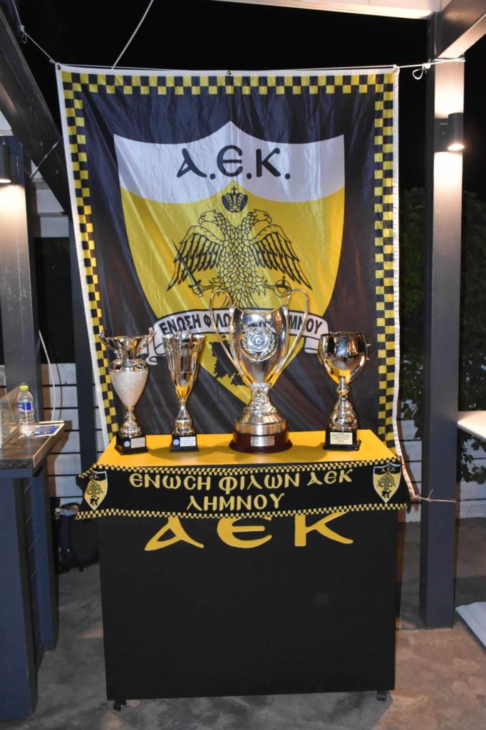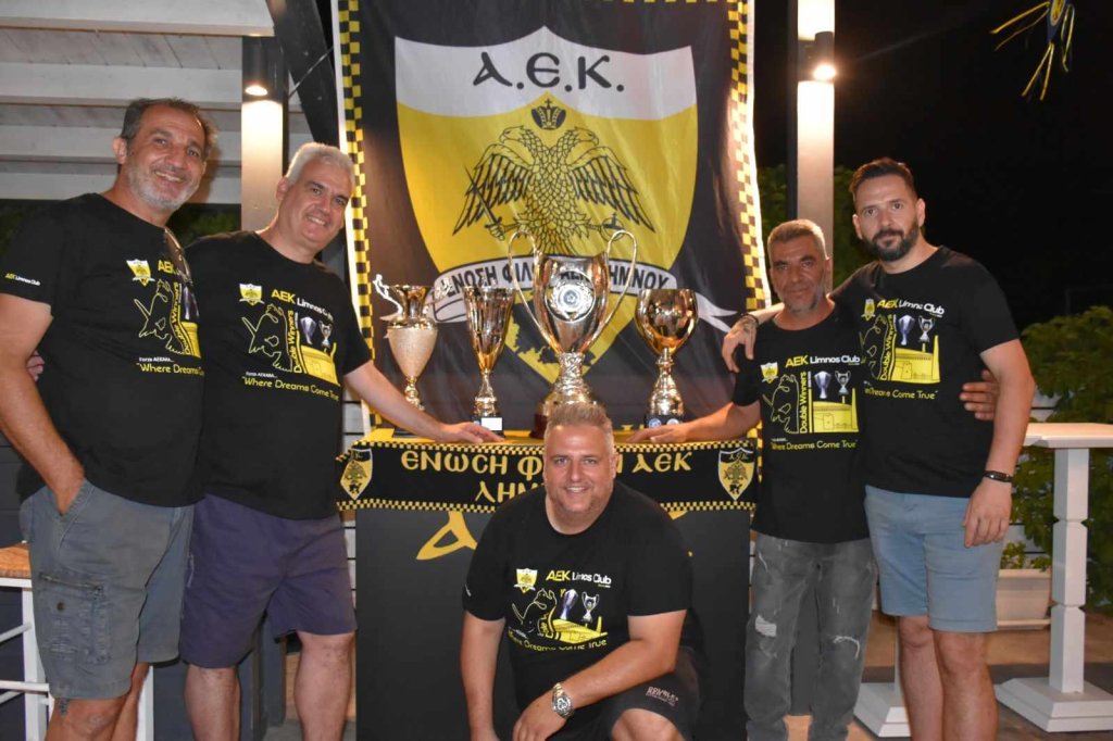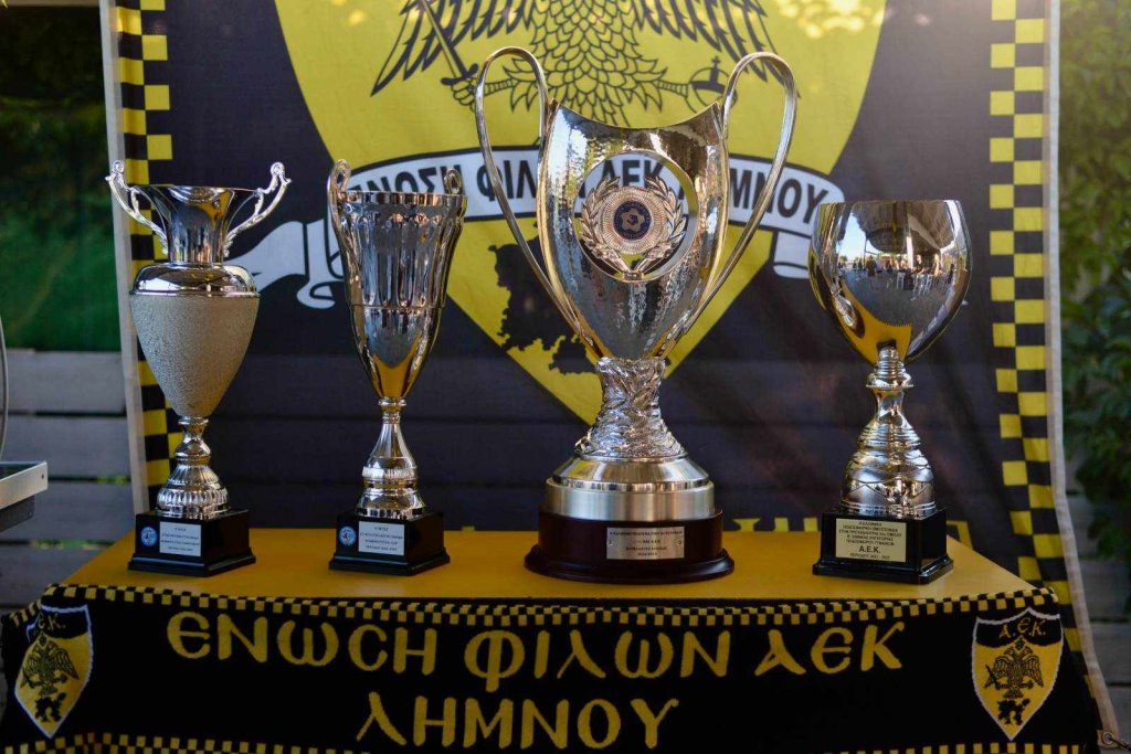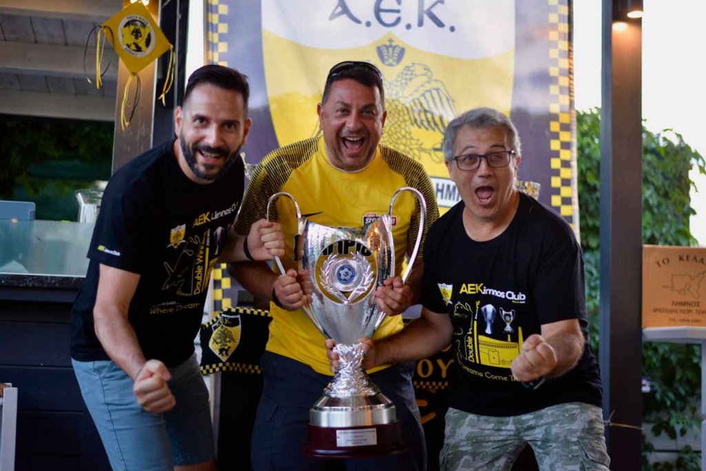 Το Κύπελλο Ελλάδας που κατέκτησε η ΑΕΚ έγινε αντικείμενο αποθέωσης χθες το βράδυ στη Λήμνο, όπου η Ένωση Φίλων ΑΕΚ Λήμνου διοργάνωσε το ετήσιο καλοκαιρινό της πάρτι. Εκτός από το Κύπελλο της ποδοσφαιρικής ομάδας, ήταν εκεί και τα τρόπαια του πρωταθλήματος ποδοσφαίρου γυναικών, αλλά και τα αντίστοιχα του φετινού ντάμπλ στο Futsal γυναικών. Οι εικόνες μιλούν από μόνες τους