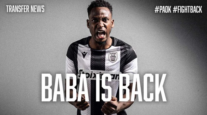 Ο Μπάμπα αποδέχθηκε την πρόταση του ΠΑΟΚ κι επέστρεψε στη Θεσσαλονίκη για να φορέσει την ασπρόμαυρη φανέλα για τα επόμενα τρία χρόνια.
