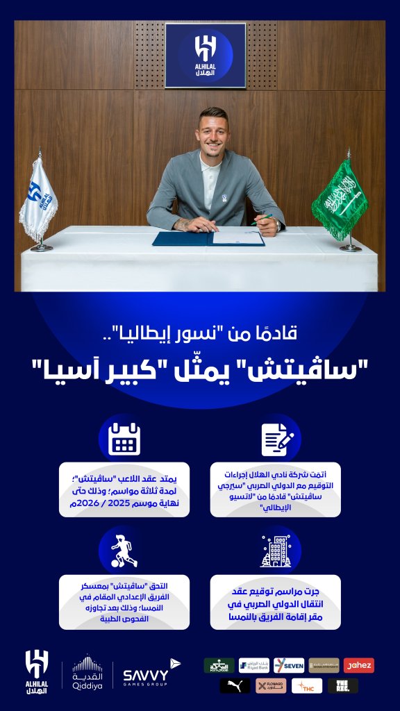 Ο 28χρονος μέσος θα συνεχίσει την καριέρα του στη Σαουδική Αραβία, καθώς συμφώνησε σε όλα με την Αλ Χιλάλ και υπέγραψε τριετές συμβόλαιο. Η Λάτσιο αναμένεται να βάλει στα ταμεία της 40 εκατ. ευρώ και τον διεθνή Σέρβο να έχει ετήσιες απόλαβες 20 εκατ. ευρώ.