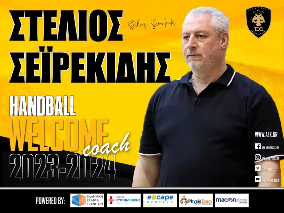 Η ΑΕΚ βρίσκεται στην ευχάριστη θέση να ανακοινώσει την έναρξη της συνεργασίας της με τον Στέλιο Σεϊρεκίδη. O 61χρονος (24/08/1961) Έλληνας προπονητής θα βρίσκεται στο «τιμόνι» της γυναικείας ομάδας Χάντμπολ της ΑΕΚ.