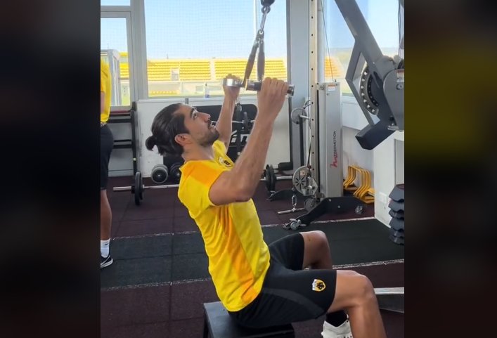Στη συνέχεια, μαζί με τους υπόλοιπους παίκτες της ΑΕΚ, ακολούθησε πρόγραμμα στο γυμναστήριο, αλλά και τρέξιμο στο βοηθητικό γήπεδο.
