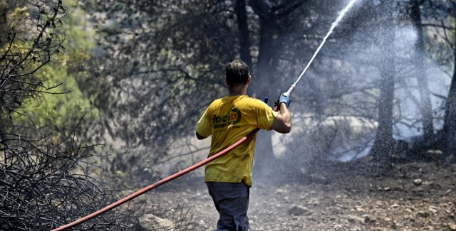 Οι αναζωπυρώσεις εντοπίζονται, ειδικότερα, στη θέση Καραούλι, στο Μελετάκι και στην Αγία Σωτήρα της Μάνδρας.