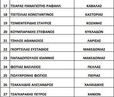 Στους βοηθούς, τέλος, ανέβηκαν οι Τσολακίδης, Οικονόμου, Λιόντος, Αρμακόλας, Ψύλλος, Ντάβελας, Τοροσιάδης, Δέλλιος, Κομισοπούλου και έμειναν εκτός οι Καλαμπόκης, Βασιλόπουλος, Θανασιάς, Μαυρουδής, Σακκάς, Φράγιος, Παγουρτζής.