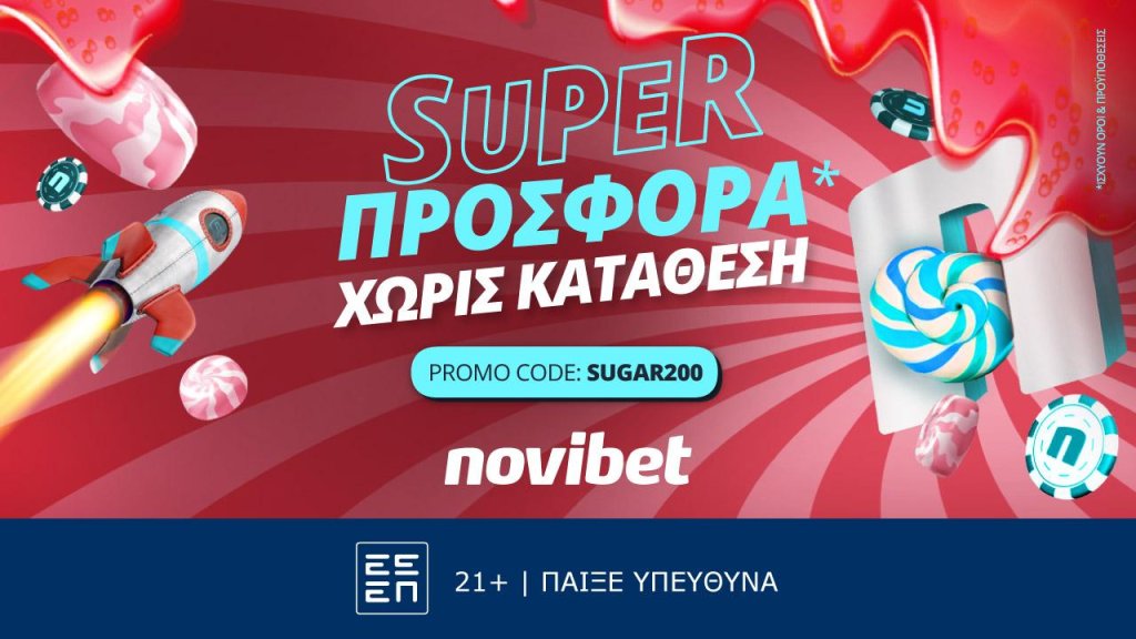 Novibet ΕΠΑΘΑ με Super Προσφορά* Γνωριμίας* 21+ | ΑΡΜΟΔΙΟΣ ΡΥΘΜΙΣΤΗΣ: ΕΕΕΠ | ΚΙΝΔΥΝΟΣ ΕΘΙΣΜΟΥ & ΑΠΩΛΕΙΑΣ ΠΕΡΙΟΥΣΙΑΣ | ΓΡΑΜΜΗ ΒΟΗΘΕΙΑΣ ΚΕΘΕΑ: 2109237777 | ΠΑΙΞΕ ΥΠΕΥΘΥΝΑ