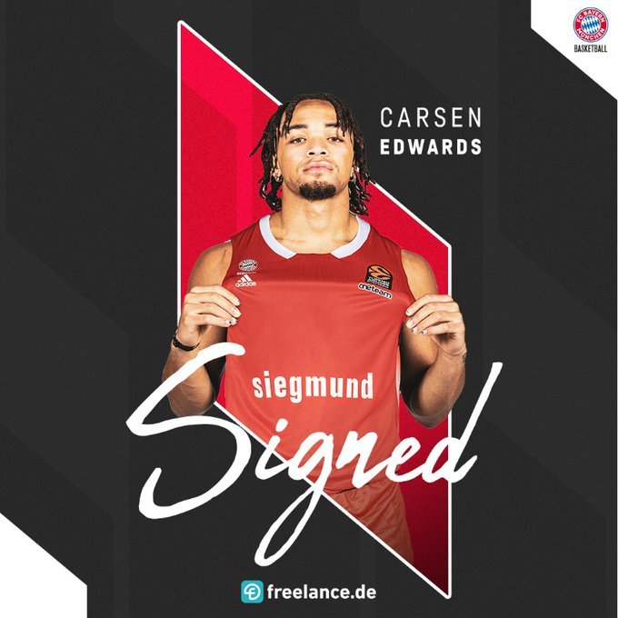 Η ομάδα της Βαυαρίας κινήθηκε για την απόκτηση του Κάρσεν Έντουαρντς, ο οποίος αποδέχτηκε την πρότασή της μετά το τέλος της συνεργασίας του με τη Φενέρμπαχτσε.Έτσι ο Αμερικανός γκαρντ θα αγωνίζεται με τη φανέλα της γερμανικής ομάδας και ενώ την περασμένη σεζόν είχε 8 πόντους, 1.3 ριμπάουντ και 1.1 ασίστ κατά μέσο όρο στη EuroLeague.