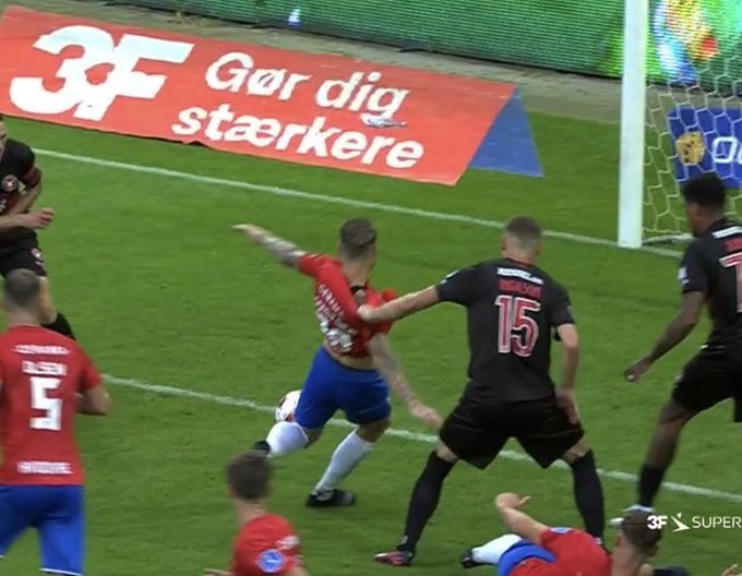 No penalty for Hvidovre after Geertsen’s jersey was ripped apart.#sldk #fcmhif pic.twitter.com/Mc3E9PmKWY