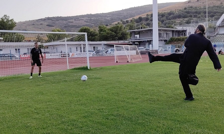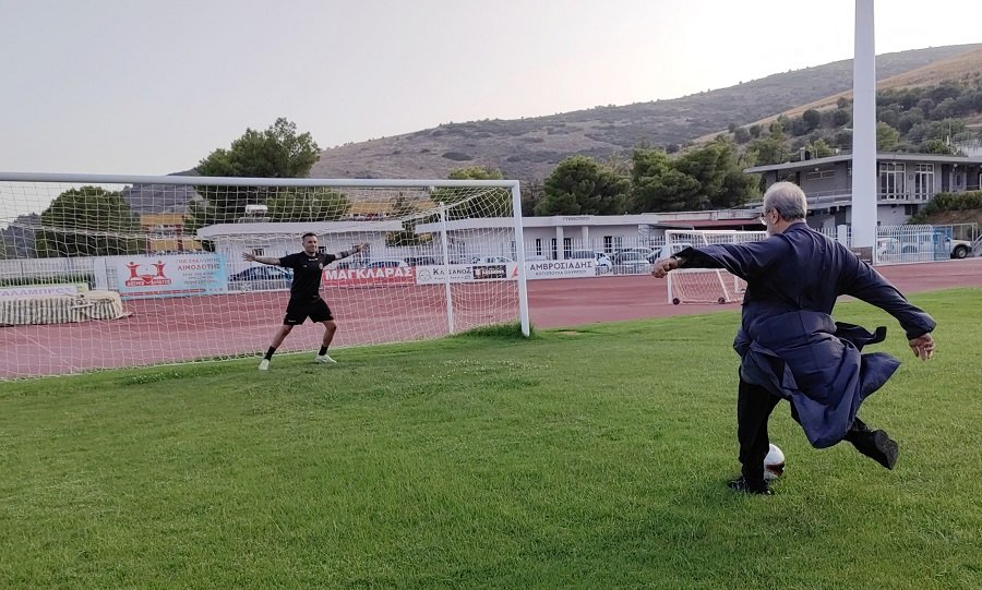 Μετά το τέλος της τελετής, ο πάτερ Γεώργιος Σέλλης και ο πάτερ Βασίλειος Δέδες στάθηκαν απέναντι από τα γκολ ποστ και ανέλαβαν να βάλουν δύσκολα στον τερματοφύλακα του Παναργειακού εκτελώντας πέναλτι.
