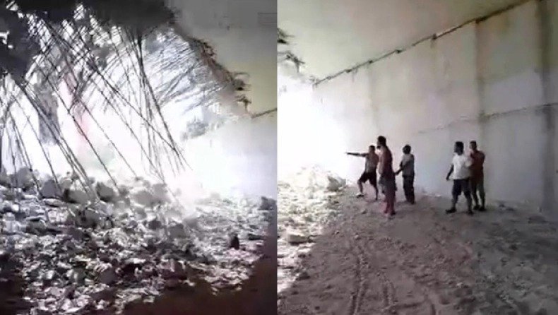 Από το πάνω μέρος πέφτουν μπάζα την ώρα που οι άνθρωποι που βρίσκονται κάτω από τη γέφυρα παρακολουθούν φοβισμένοι, ενώ κάποιος άλλος μαζεύει τα σίδερα που έχουν καταρρεύσει.