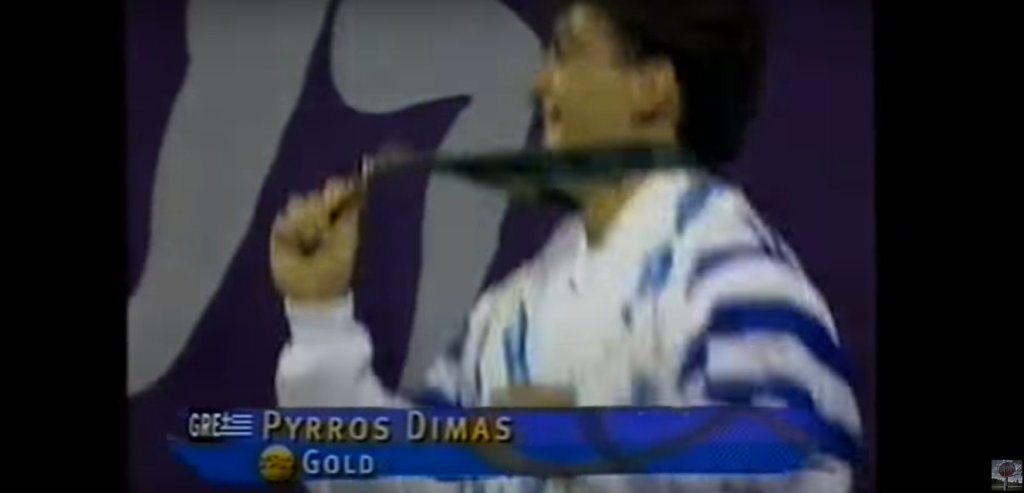ο Πύρρος Δήμας κατακτά το χρυσό μετάλλιο στην άρση βαρών στην κατηγορία των 83 κιλών στους Ολυμπιακούς Αγώνες της Ατλάντα σηκώνοντας 180 κιλά στο αρασέ, 212.5 στο ζετέ και 392.5 στο σύνολο.