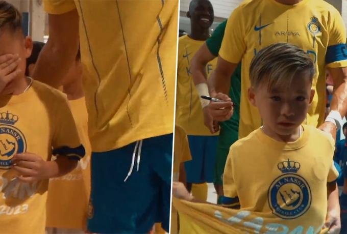 Ο Ρονάλντο προσπάθησε να τον ηρεμήσει, του έδωσε και αυτόγραφο στη φανέλα και τον αγκάλιασε.