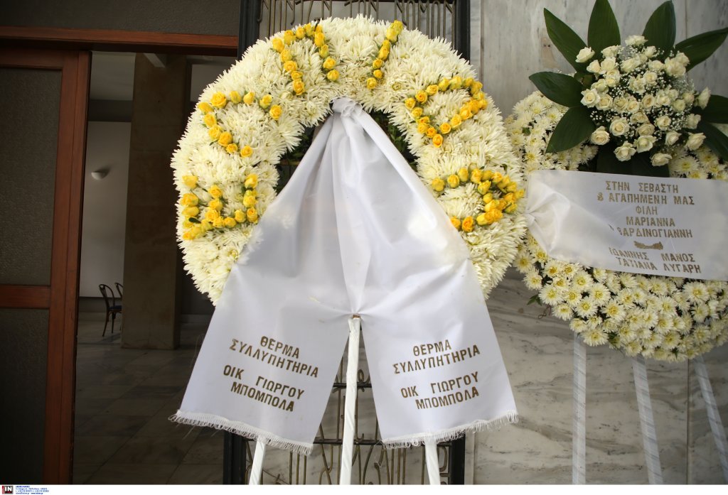 Η κηδεία της Μαριάννας Βαρδινογιάννη, η οποία έφυγε από τη ζωή την Δευτέρα σε ηλικία 80 ετών, πραγματοποιήθηκε νωρίτερα σήμερα, Τετάρτη, στο παρεκκλήσι του Αγίου Γεωργίου στην οικία στην οποία ζούσε με τον σύζυγό της, Βαρδή Βαρδινογιάννη στην Εκάλη.