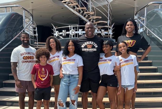 Ο Μάτζικ Τζόνσον έχει περάσει πολύ καλά στις διακοπές του, στην Ελλάδα, τα προηγούμενα χρόνια και έτσι επισκέφτηκε ξανά τη χώρα μας. Ο θρύλος του NBA και των Λος Άντζελες Λέικερς, έκανε μία δημοσίευση στους λογαριασμούς που διαθέτει στα μέσα κοινωνικής δικτύωσης, με φωτογραφία του ίδιου και της οικογένειάς του, από τις διακοπές που κάνει στην Ελλάδα αυτές τις μέρες, στο πολυτελές γιωτ του. Μεταξύ άλλων, ο Μάτζικ Τζόνσον έχει επισκεφτεί με τη γυναίκα του, την Ακρόπολη, τον Ισθμό της Κορίνθου και τη Σαντορίνη, ενώ το καλοκαίρι του 2021 είχε κάνει περιοδεία στα νησία του Ιονίου Πελάγους. Να σημειωθεί ότι στη σχετική φωτογραφία, όλη η οικογένειά του, φοράει μπλουζάκια των Ουάσινγκτον Κομάντερς, ομάδας του NFL, στην οποία μπήκε πρόσφατα ως συνιδιοκτήτης, ο Μάτζικ Τζόνσον.