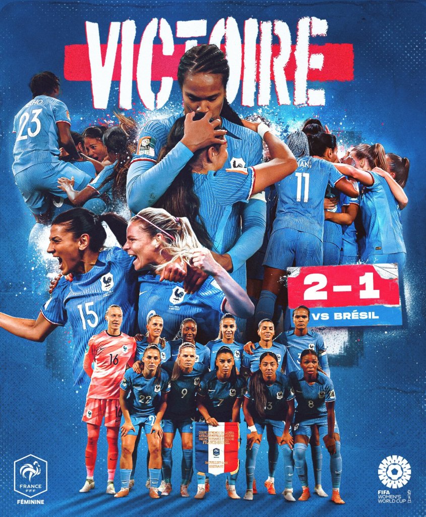 Την νίκη με 2-1 πανηγύρισε η Γαλλία κόντρα στη Βραζιλία, για την 2η αγωνιστική του Παγκοσμίου Κυπέλλου Γυναικών, ανέβηκε στην κορυφή του 6ου ομίλου και έκανε αποφασιστικό βήμα πρόκρισης για τους «16» της διοργάνωσης.