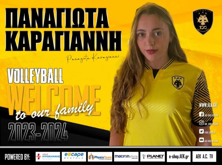 Η ΑΕΚ βρίσκεται στην ευχάριστη θέση να ανακοινώσει την έναρξη της συνεργασίας της με την Παναγιώτα Καραγιάννη. Η 18χρονη (07/04/2005) ακραία αθλήτρια, ύψους 1,73 μ., υπέγραψε το συμβόλαιό της και εντάσσεται στο δυναμικό της γυναικείας ομάδας Βόλεϊ του Συλλόγου.
