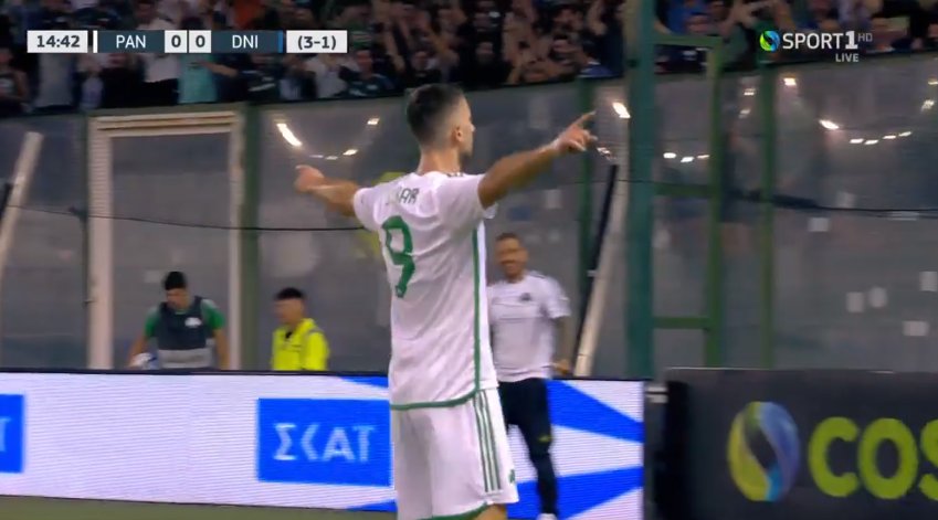 Ο Παναθηναϊκός άνοιξε το σκορ στο 15ο λεπτό κόντρα στην Ντνίπρο. Μετά από ένα βαθύ γέμισμα, ο Βόλινετς άργησε να βγει, ο Σπόραρ μπήκε στην φάση και τον πλάσαρε για το 1-0