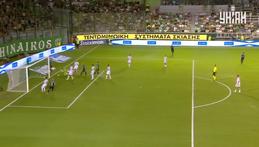 Ισοφαρίζει η Ντνίπρο τον Παναθηναϊκό στο 24ο λεπτό χάρις σε απίθανο γκολ του Ντοβμπικ.