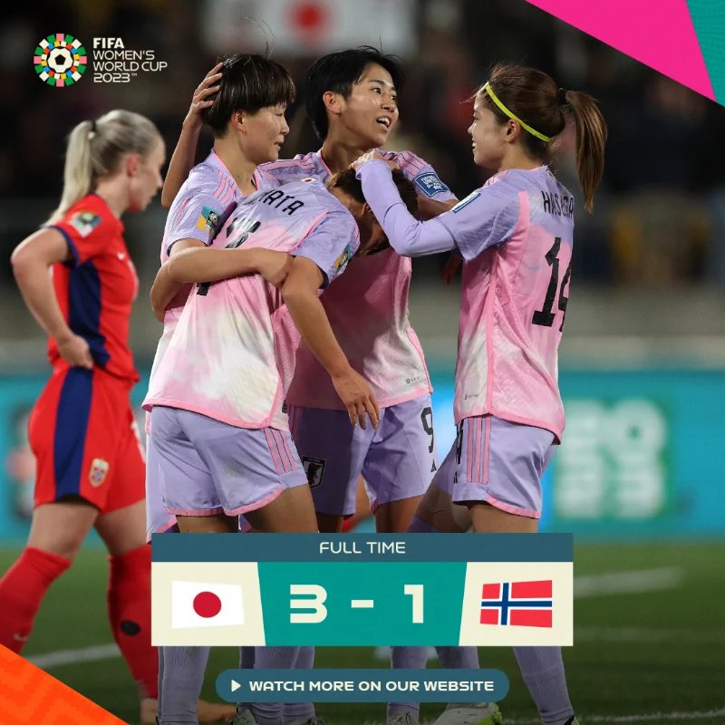 Εντυπωσιακή Ιαπωνία! Οι Ασιάτισσες κέρδισαν με 3-1 την Νορβηγία, παρέμειναν αήττητες στη διοργάνωση και πανηγύρισαν την πρόκριση στα προημιτελικά του Παγκοσμίου Κυπέλλου Γυναικών. Εκεί, θα αντιμετωπίσουν τον νικητή του ζευγαριού ΗΠΑ-Σουηδία.