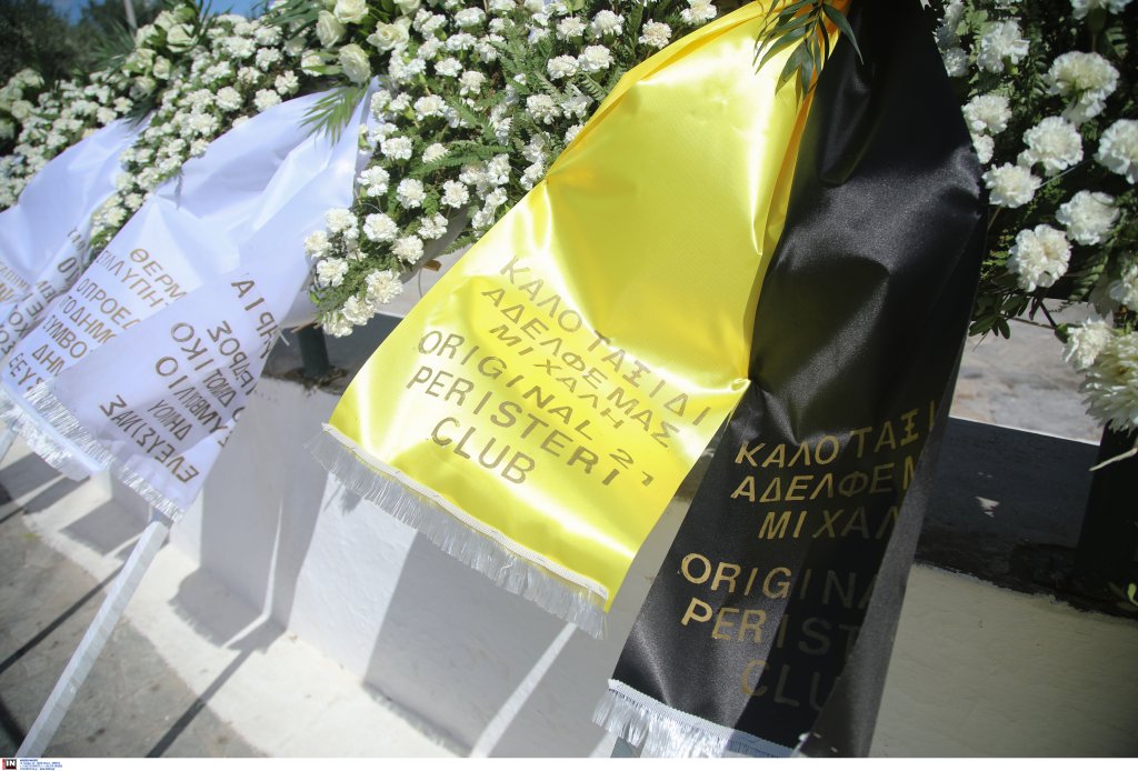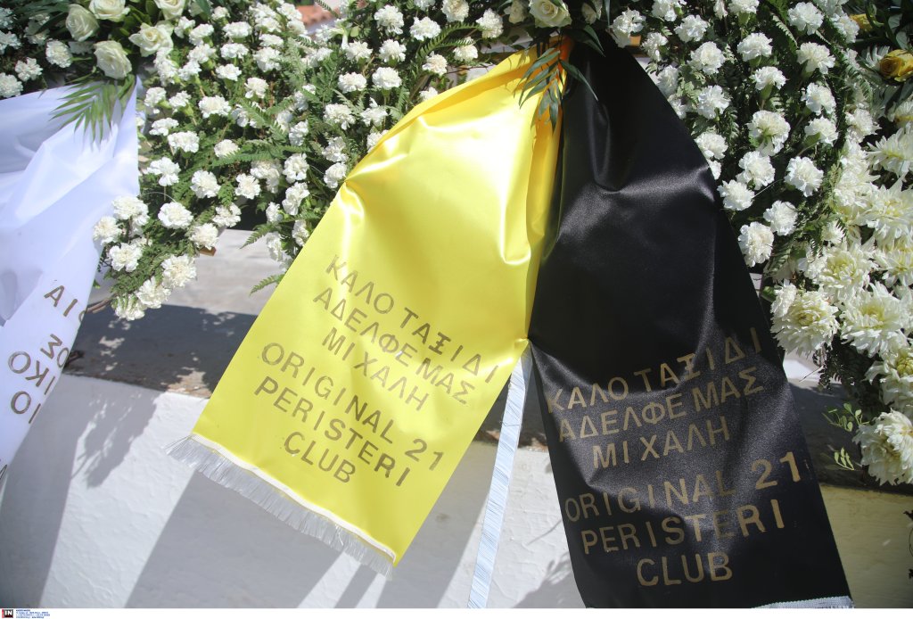 Η νεκροφόρα που μετέφερε τη σορό του 29χρονου φέρει κιτρινόμαυρες κορδέλες ενώ τραγικές φιγούρες είναι η μητέρα του και η οικογένειά του. Το φέρετρο του άτυχου Μιχάλη ήταν τυλιγμένο με τις σημαίες της ΑΕΚ και της Original ενώ όλοι χειροκρότησαν κατά την έξοδο της σορού από την εκκλησία.