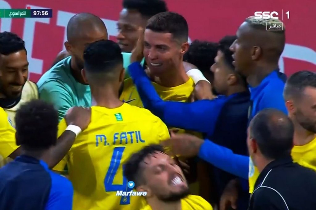 Ο Ρονάλντο είχε διαφορετική άποψη και ισοφάρισε τρία λεπτά αργότερα. Ο αγώνας οδηγήθηκε στην παράταση, όπου ο 38χρονος Πορτογάλος χτύπησε ξανά, με κεφαλιά έπειτα από δοκάρι, γράφοντας το 2-1.