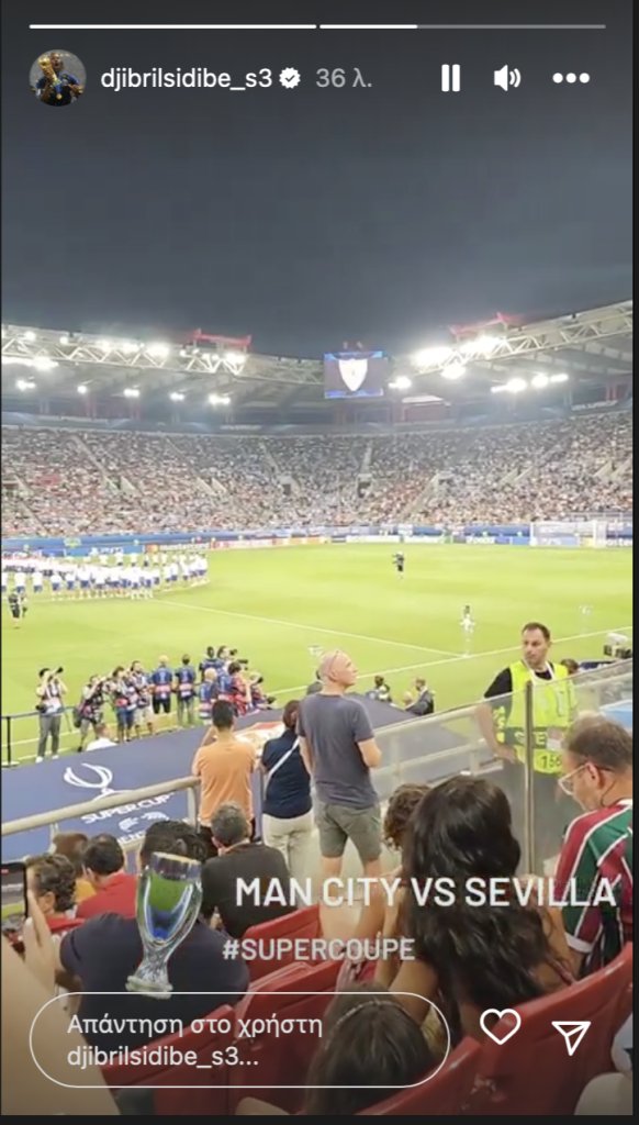 Στο Γ. Καραϊσκάκης βρίσκονται Τζιμπρίλ Σιντιμπέ και Νορντίν Άμραμπατ που παρακολουθούν από κοντά τον τελικό του Super Cup Ευρώπης ανάμεσα σε Μάντσεστερ Σίτι και Σεβίλλη. Οι δύο ποδοσφαιριστές της ΑΕΚ, ανέβασαν σχετικά ποστ στο Instagram από τα επίσημα του φαληρικού γηπέδου, λίγο πριν τη σέντρα του μεγάλου αγώνα.