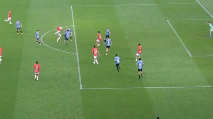 Ένα αριστουργηματικό γκολ πέτυχε ο 20χρονος επιθετικός της Ιντερνασιονάλ, Λούκα. Ο παίκτης κοντρόλαρε την μπάλα πολύ ωραία στο όριο της περιοχής και με ένα ψαλιδάκι την έστειλε στα δίχτυα για το 1-1 επί της Γκρέμιο.