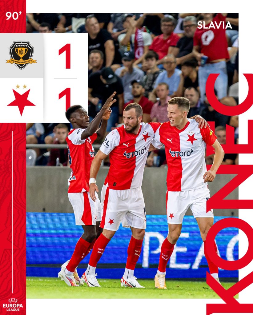 Στην επόμενη φάση η Σλάβια που πήρε ισοπαλία 1-1 στην έδρα της Ντνίπρο κι ενώ στο πρώτο ματς είχε νικήσει με 3-0.