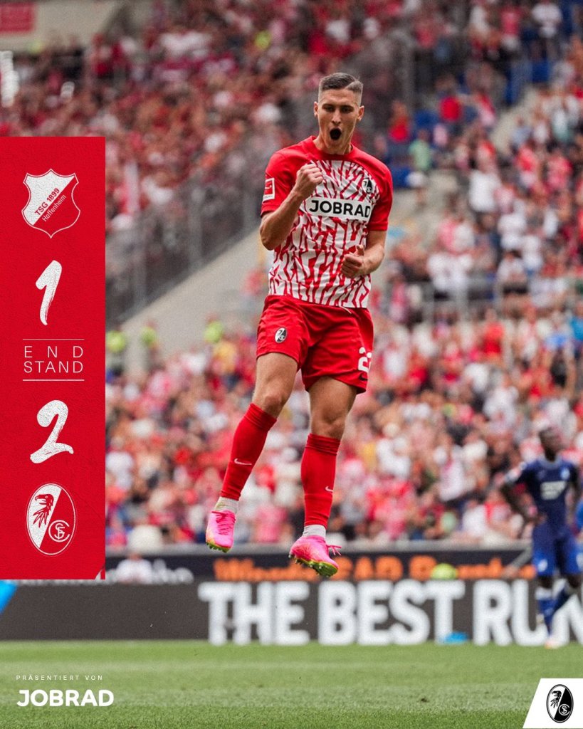 Η Φράιμπουργκ πέρασε με 2-1 από την έδρα της Χόφενχαϊμ και πανηγύρισε το πρώτο της τρίποντο στο φετινό πρωτάθλημα.