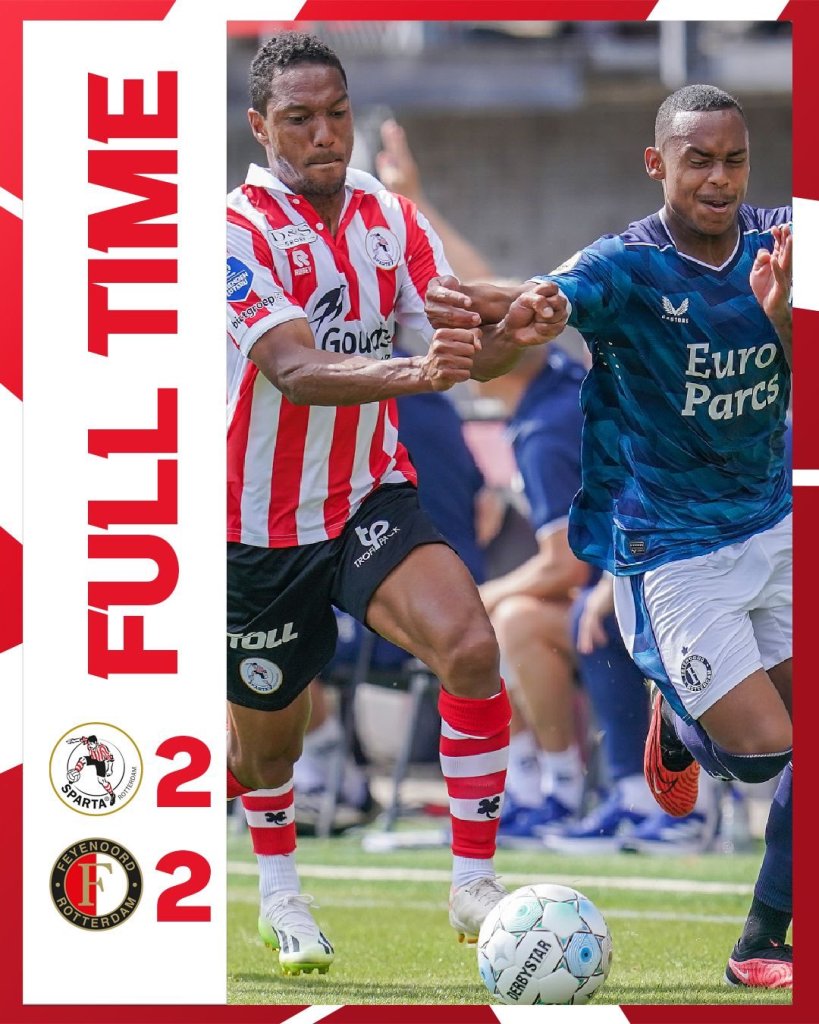 Στο 41ο λεπτό ο Μπριν άνοιξε το σκορ για τη Σπάρτα με πλασέ από κοντά ενώ στο 54’ η Σπάρτ έφυγε στην κόντρα και ο Μπριν με πλασέ από το πέναλτι έκανε το 2-0. Η Φέγενορντ έβγαλε αντίδραση και στο 77’ ο Χιμένες με κεφαλιά μείωσε σε 2-1 και στο 90+1’ ο Σάουερ ισοφάρισε σε 2-2 με δυνατό σουτ από το ύψος του πέναλτι