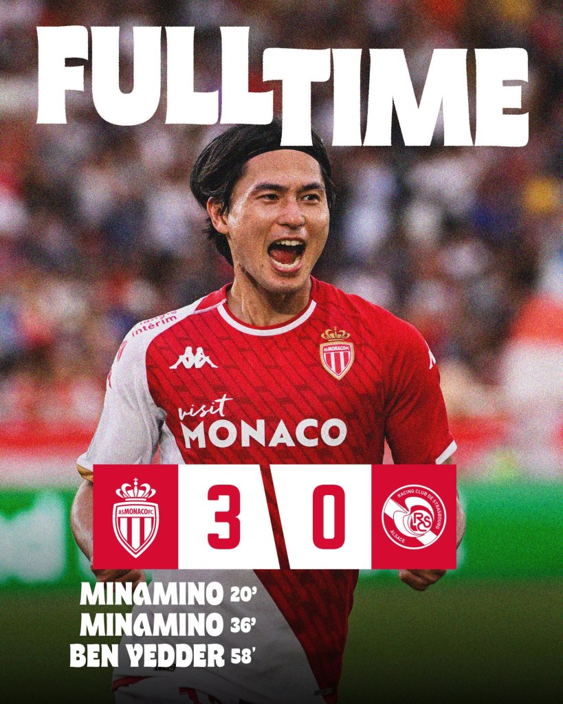 Το 2Χ2 έκαναν οι Μονεγάσκοι, καθώς νίκησαν εύκολα με 3-0 το Στρασβούργο. Μεγάλος πρωταγωνιστής της αναμέτρησης ο Τακούμι Μιναμίνο, που πέτυχε δύο γκολ και έδωσε και μια ασίστ.