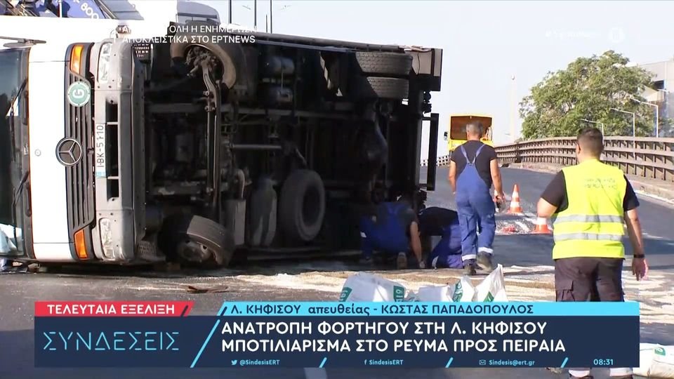 Ανατροπή φορτηγού στη Λ. Κηφισού - Μποτιλιάρισμα στο ρεύμα προς Πειραιά (VIDEO)