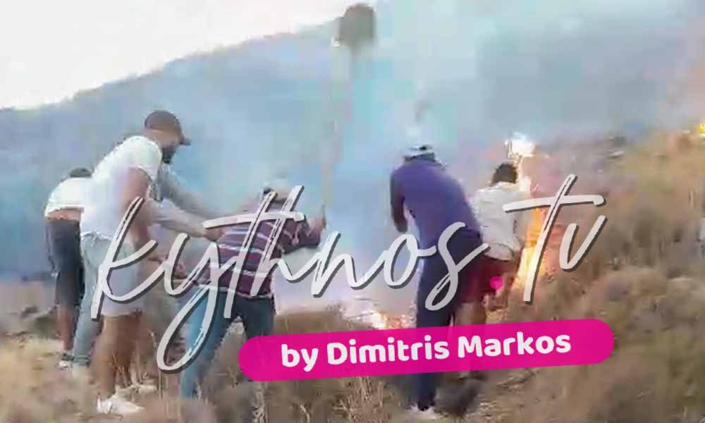 Η δραματική προσπάθεια των κατοίκων της Κύθνου να περιορίσουν τη φωτιά στην περιοχή «Σκύλου» (VIDEO)