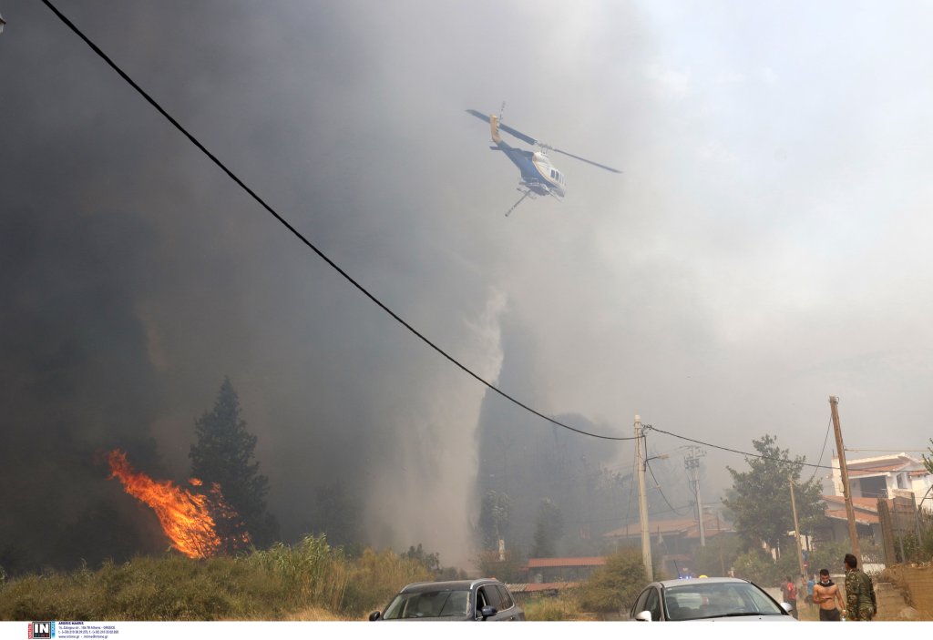 Η φωτιά ανεβαίνει ξανά στο βουνό, ενώ στην περιοχή πνέουν ισχυροί άνεμοι 7 μποφόρ. Πλέον, οι φλόγες φτάνουν στο σημείο που ξεκινά ο Εθνικός Δρυμός.